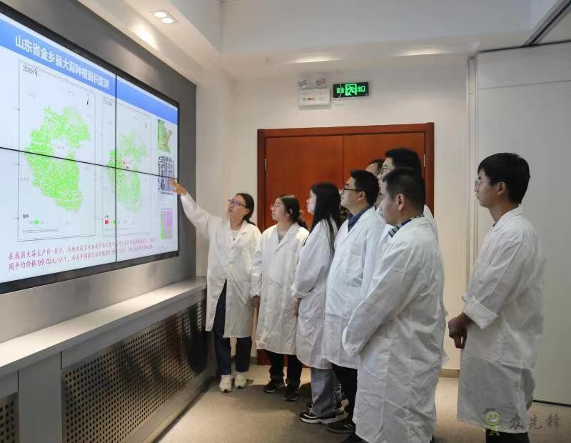 農(nóng)業(yè)遙感團(tuán)隊(duì)科研人員們正在對(duì)高分大蒜種植面積遙感監(jiān)測(cè)結(jié)果進(jìn)行數(shù)據(jù)分析。金云翔 攝
