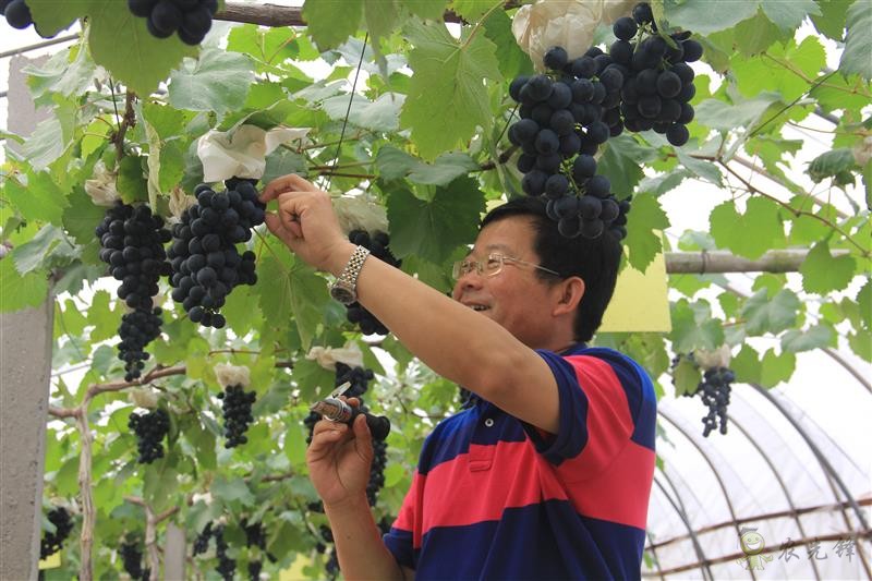 單濤在葡萄公園里檢查葡萄質(zhì)量