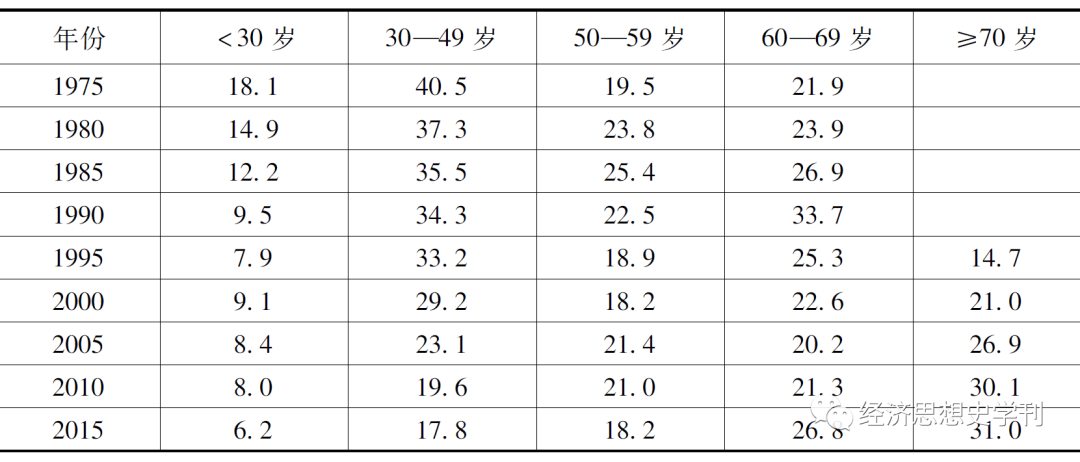 表1 日本農業從業者年齡分布的推移(1975—2015年)(單位:%)
