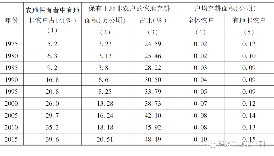 表2 日本農村中的保有土地非農戶及其農地棄耕