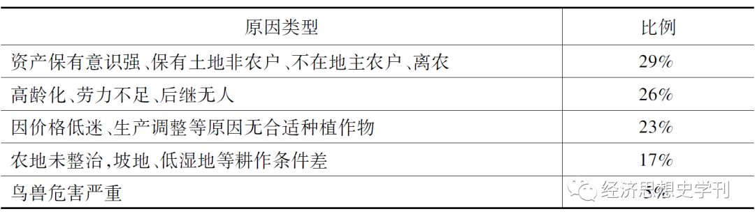 表3 導致農地閑置荒廢的主要原因(2014年)